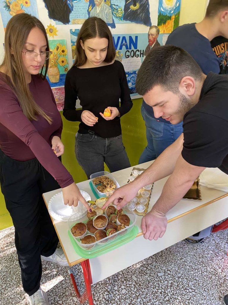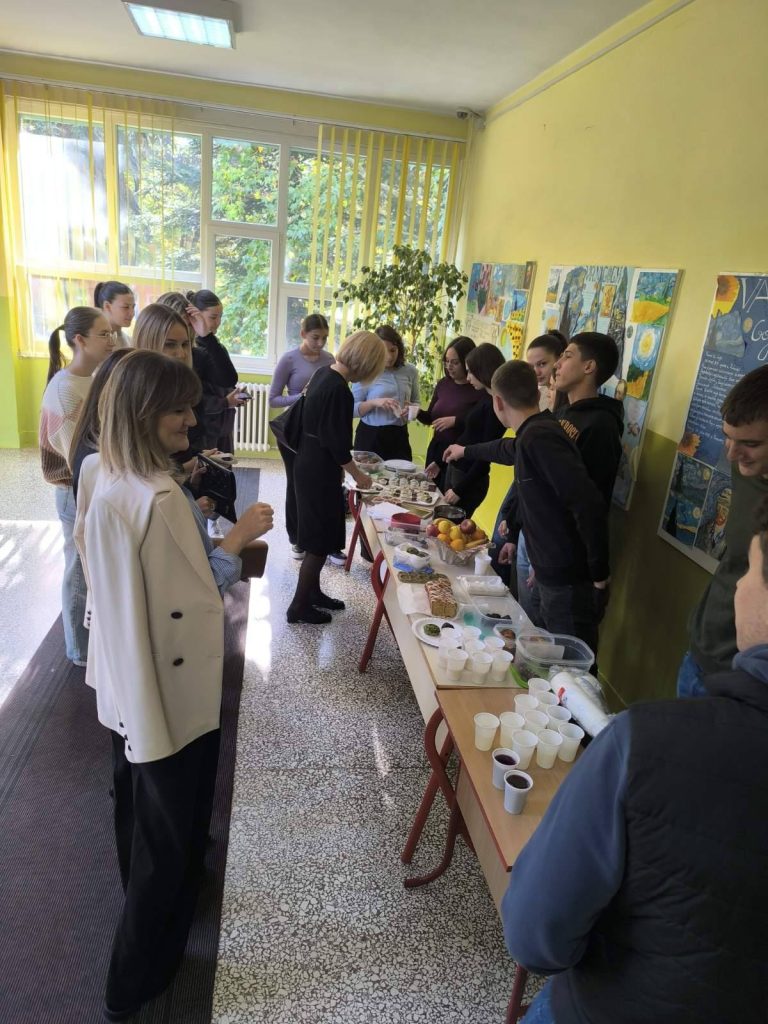 Povodom Međunarodnog dana zdrave hrane, Savjet učenika naše škole zajedno sa profesoricom Vesnom Ninković, organizovao je humanitarni bazar na kome su naši učenici još jednom dokazali da zdrava hrana ne mora biti dosadna – stolovi su bili prepuni maštovitih i preukusnih zalogaja: od zdravih kolača, svježih sokova, ukusnih slanih mafina, pa do raznih vrsta voća.