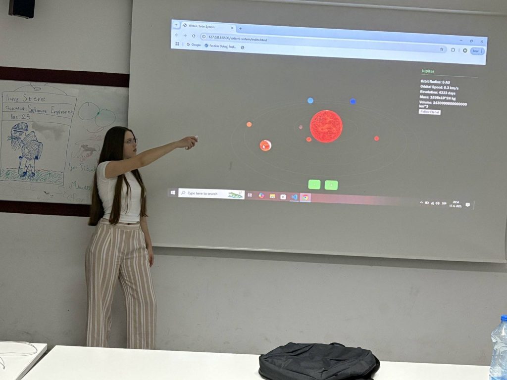 Tokom seminara sam radila i na svom završnom projektu na temu ,,Simulacija Sunčevog sistema’’, koji sam implementirala u JavaScript-i koristeći WebGL. Moj projekat ima više od 600 linija koda i prikazuje realistično kretanje planeta, osvjetljenje, orbite i još mnogo toga što sam samostalno osmislila i implementirala.