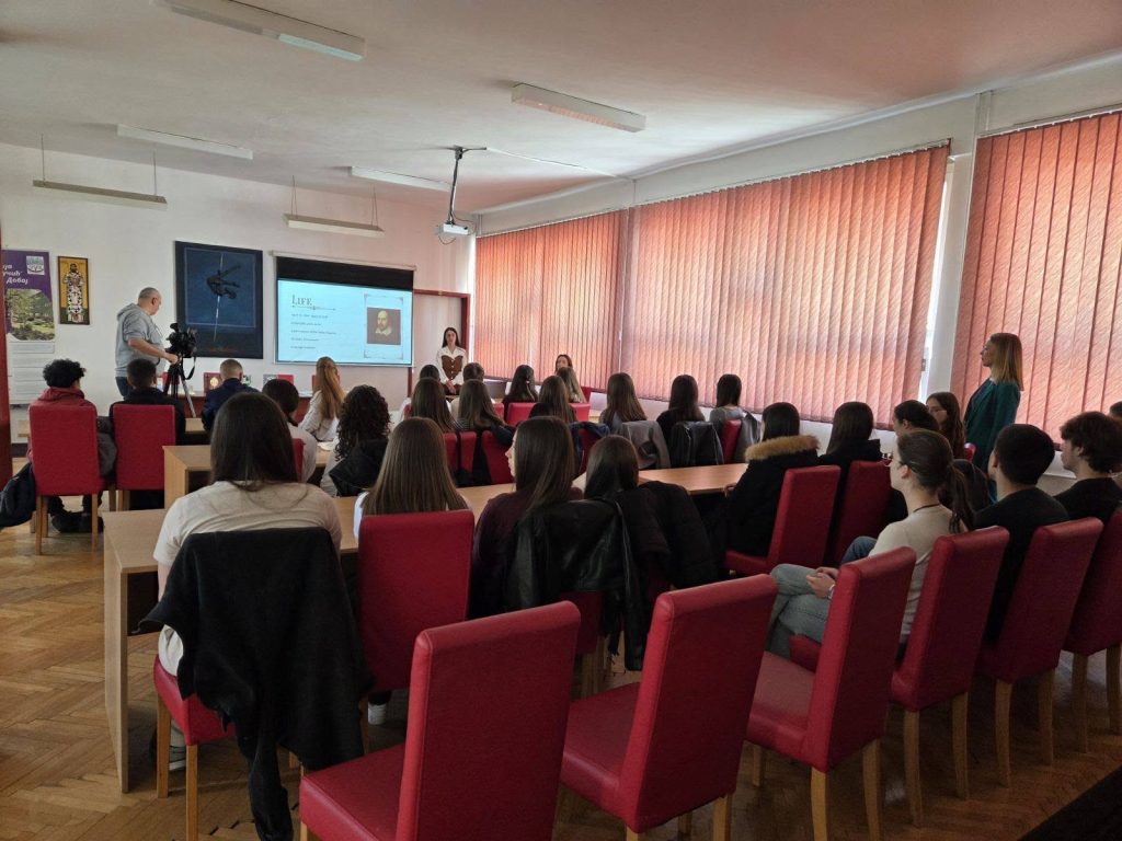 Obilježavanje rođenja Vilijema Šekspira ove godine proteklo je u znaku kreativnosti i dobre energije, kroz interaktivnu radionicu održanu na engleskom jeziku, koja je uspješno spojila šekspirovski engleski i gen z sleng. Nakon kratkog uvoda o životu i djelu Šekspira, učenici devetih razreda JU OŠ “Vuk Stefanović Кaradžić” i “Sveti Sava” pokazali izuzetno pozvavanje izraza starog engleskog i modernih izraza.
