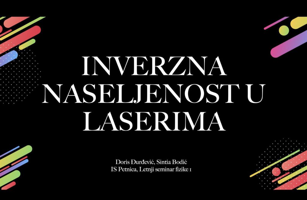 Pred kraj seminara dobili smo temu za pripremu završnog projekta i prezentacije. Moja koleginica iz Subotice i ja smo obrađivale temu „Inverzna naseljenost u laserima“, koju kao svoj projektni zadatak moramo finalizirati tokom školskog raspusta.
