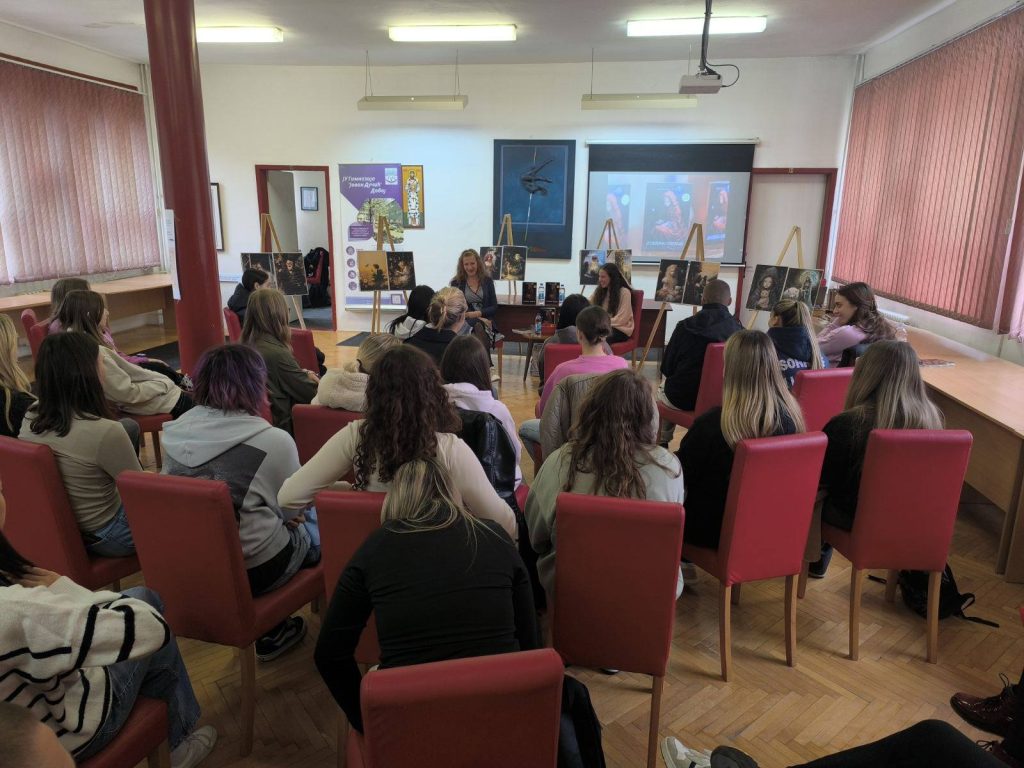 Razgovor sa gošćom je vodila Tea Bukejlović, a citate je čitala Anastasija Marić, učenice naše škole.